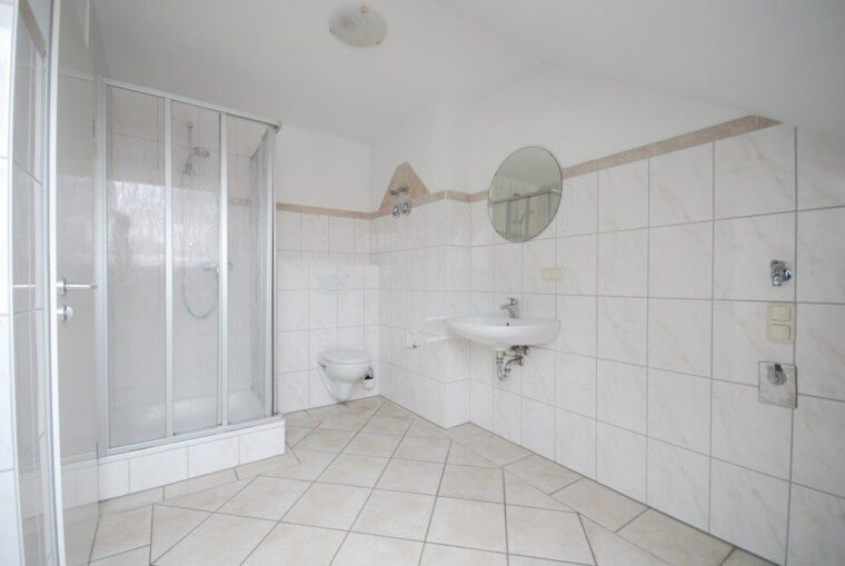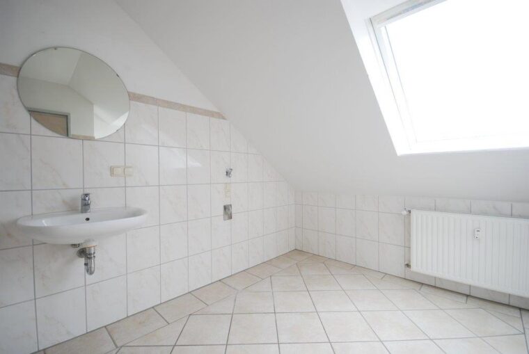 Auf der rechten Seite des Flurs findet sich eine kleine Abstellnische, die zusätzliche Staufläche bietet oder sich hervorragend als Arbeitsbereich nutzen lässt. Diese durchdachte Raumaufteilung und die Kombination aus hellen Räumen, offenen Wohnbereichen und Rückzugsorten machen diese Dachgeschosswohnung zu einem attraktiven Zuhause mit besonderem Charme.