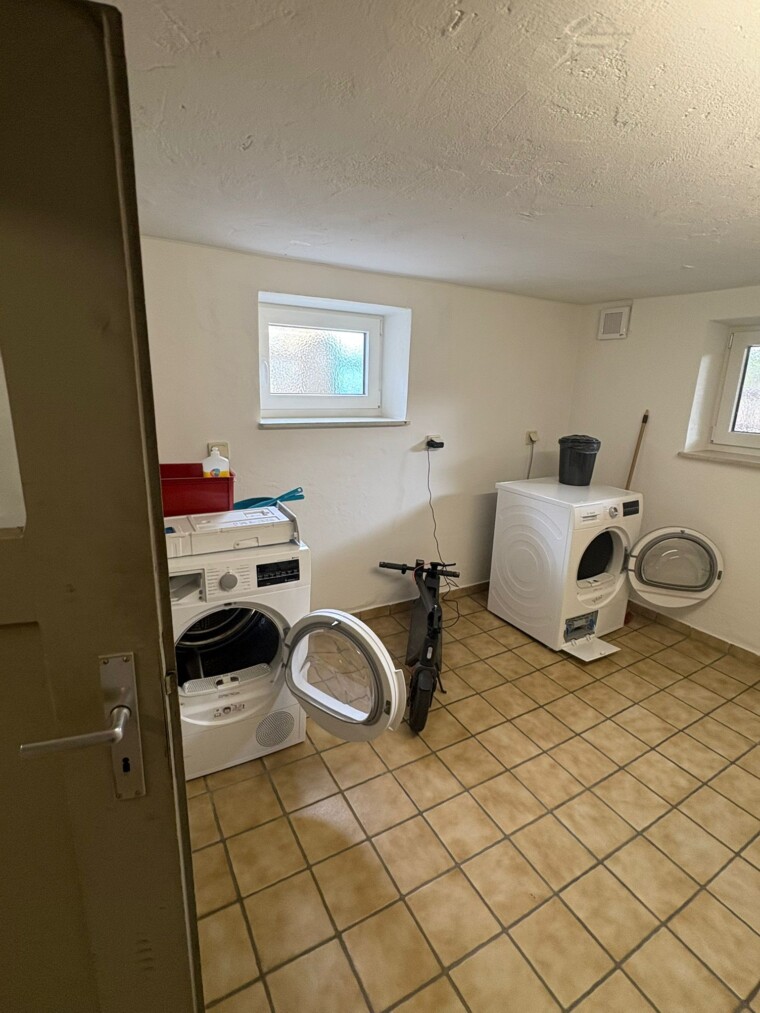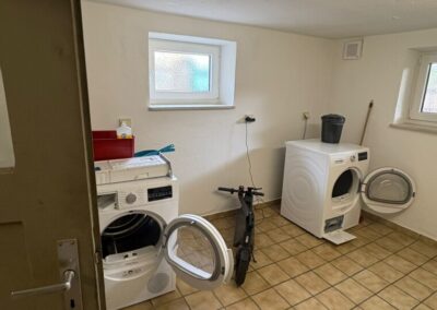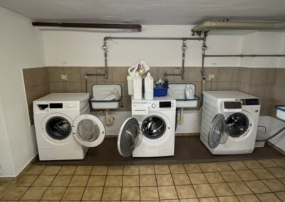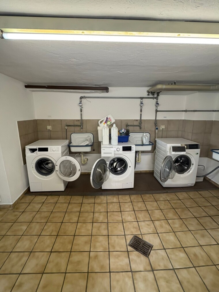 Im Kellergeschoss befindet sich ein gemeinschaftlicher Waschraum für alle Bewohner. Von hier aus