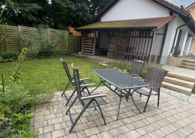 führt ein direkter Zugang in den gemeinschaftlichen Garten – ein ruhiges, grünes Plätzchen, das sich