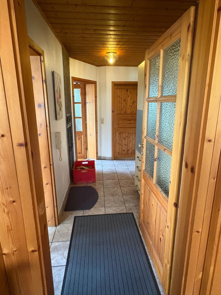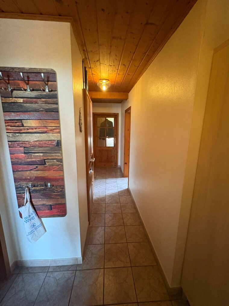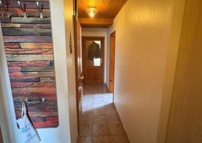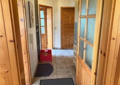 Hinter der Eingangstür öffnet sich ein zentraler Flur, der sämtliche Räume miteinander verbindet. Links liegt die