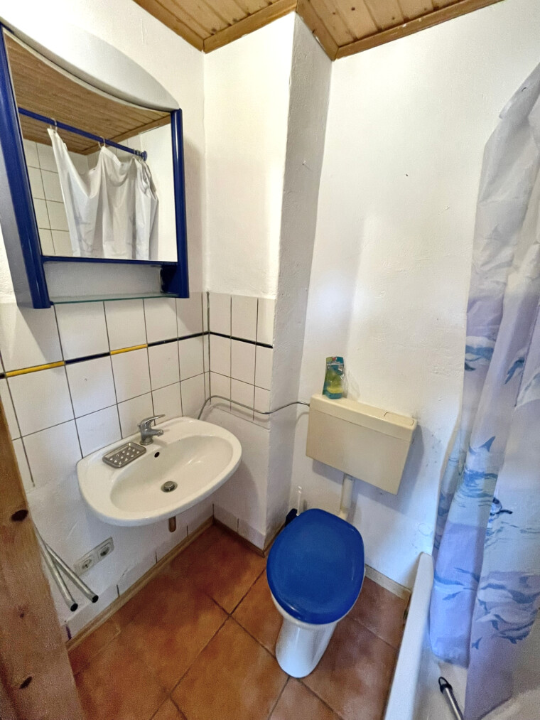 Anschluss für eine Waschmaschine verfügt. Das Badezimmer ist mit einer Dusche ausgestattet und