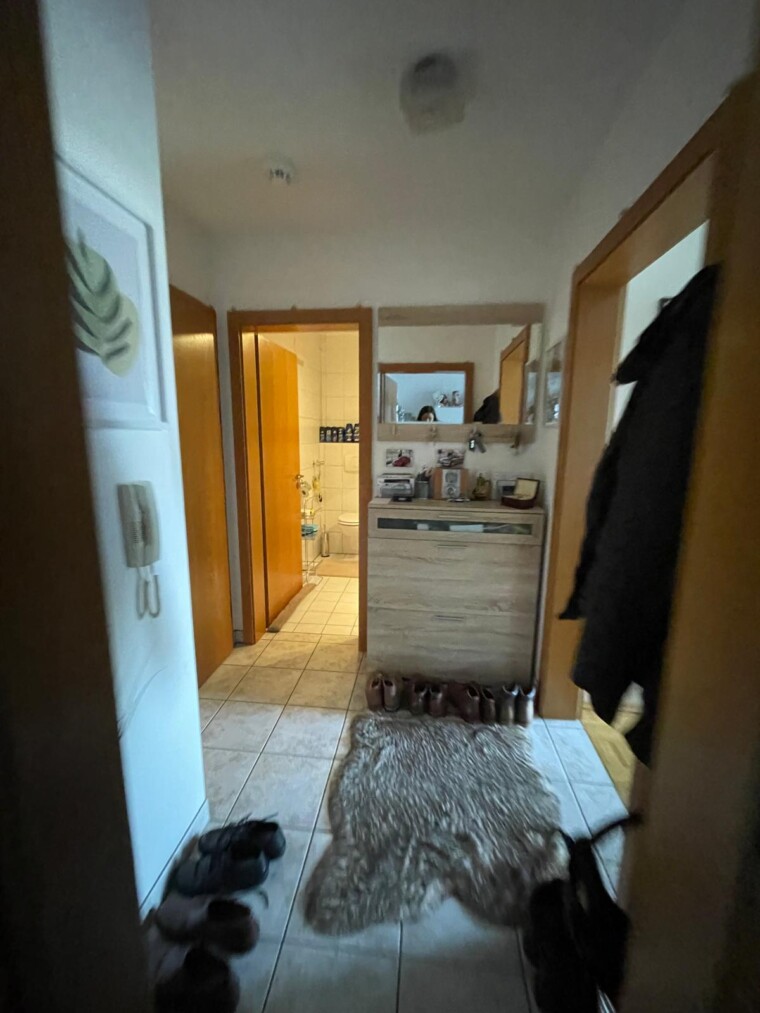 weitere Möbel bietet. Links vom Flur liegt das modern ausgestattete Badezimmer mit Dusche –